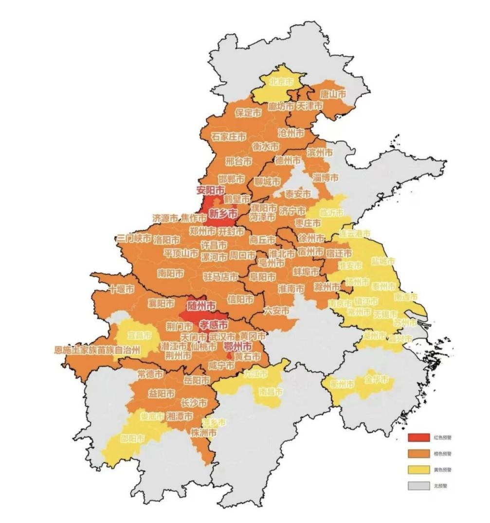 为积极应对本次污染过程,各地已提前启动预警响应。京津冀及周边、长三角、长江中游地区共86个地级以上城市(新区)启动预警,根据环保绩效等级采取差异化管控措施。其中,河南省安阳、新乡,湖北省鄂州、孝感、随州5个城市启动红色预警,北京市于18日零时启动黄色预警。